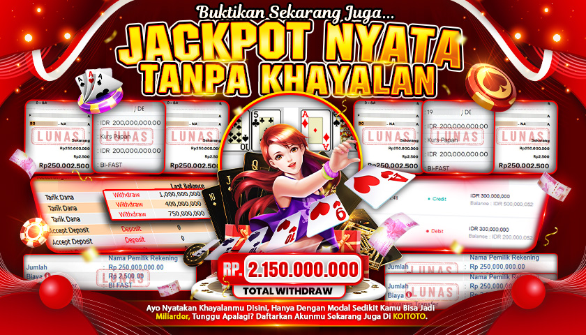 SELAMAT DATANG DI KOITOTO - BANDAR TOGEL, LIVE CASINO & SLOT ONLINE TERGACOR DI INDONESIA - Nikmati Diskon Togel Terbesar 4D: 66.5% | 3D: 59,5% | 2D: 29,5% - Bonus Cashback Turnover Live Game IDN 0.7% - Extra Bonus Panjat Turnover Slot Sampai 150 Juta - Layanan Transaksi Bank 24 Jam Tanpa Offline. Minimal Deposit IDR 10.000,- dan Withdraw IDR 35.000,-